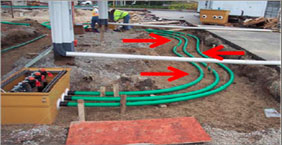All beds should be laid so that the pipe will not dip or sag when it is installed. Laying of pipe should start from the tank farm. Underground pipe runs may be continuous or have electrofusion welded joints. Any mechanical joints or compression fittings must be located within a containment chamber or sump.